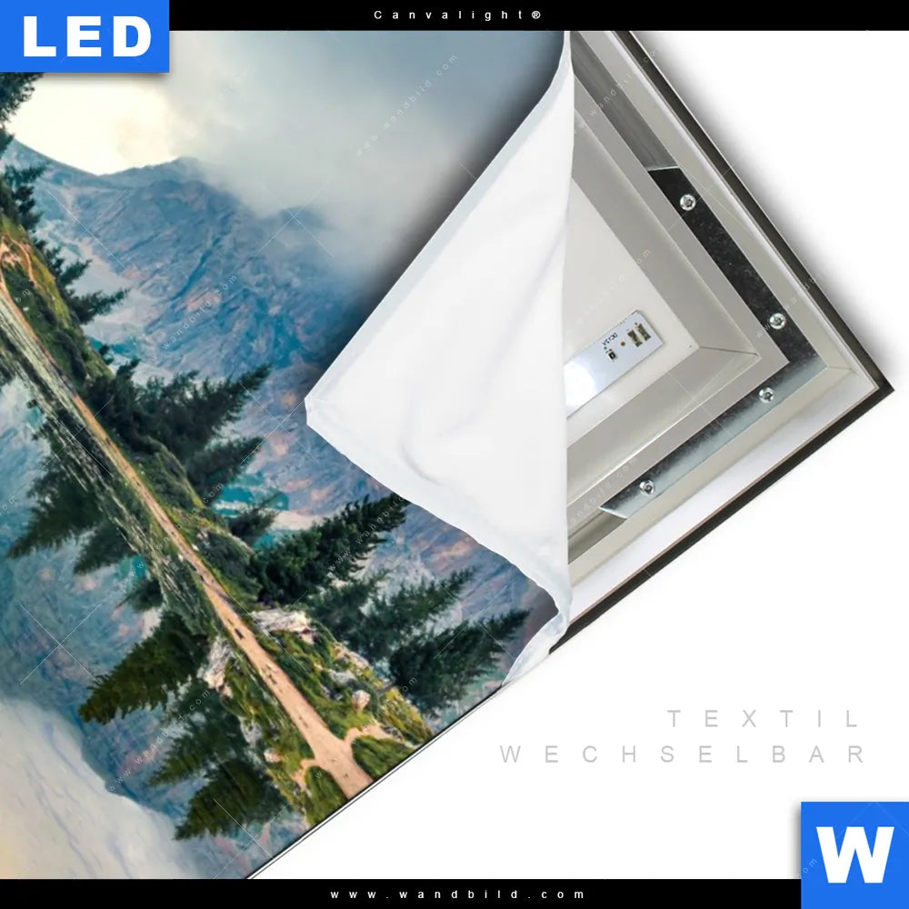 LED-Textilrahmen-Bild mit austauschbarem Landschaften Textil-Druck (Wechselbild)