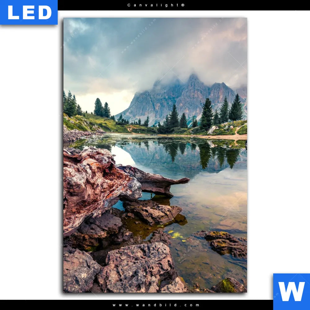 Canvalight® Leuchtbild | Dramatischer Morgenblick am See | Hochformat