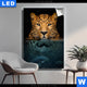 Canvalight® Leuchtbild | Leopard im Wasser | Schmal