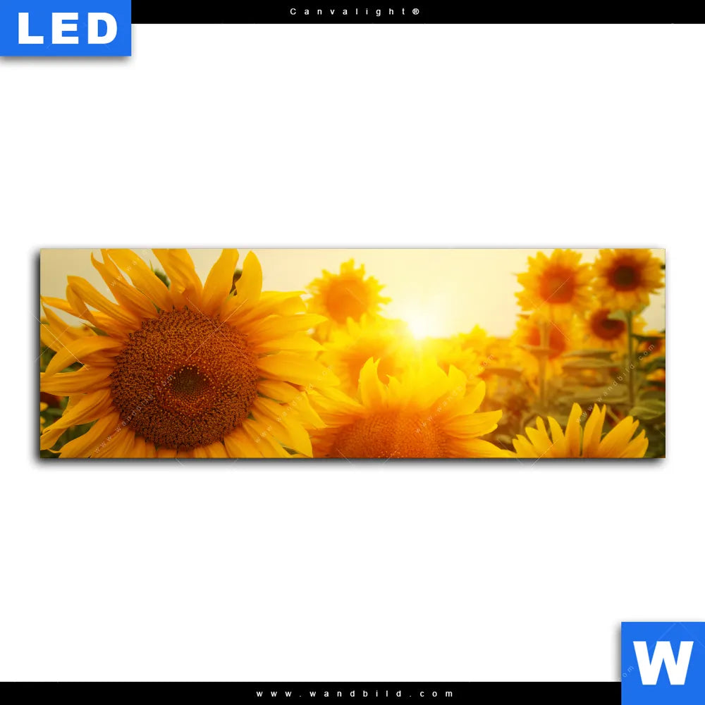 Canvalight® Leuchtbild | Sonnenblumen im Abendlicht | Panorama