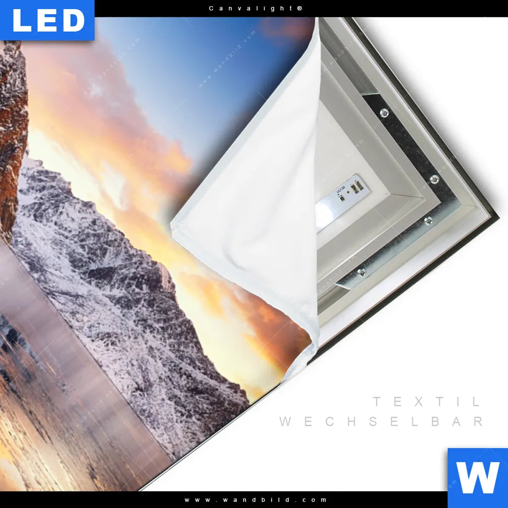 LED-Textilrahmen-Bild mit austauschbarem Landschaften Textil-Druck (Wechselbild)