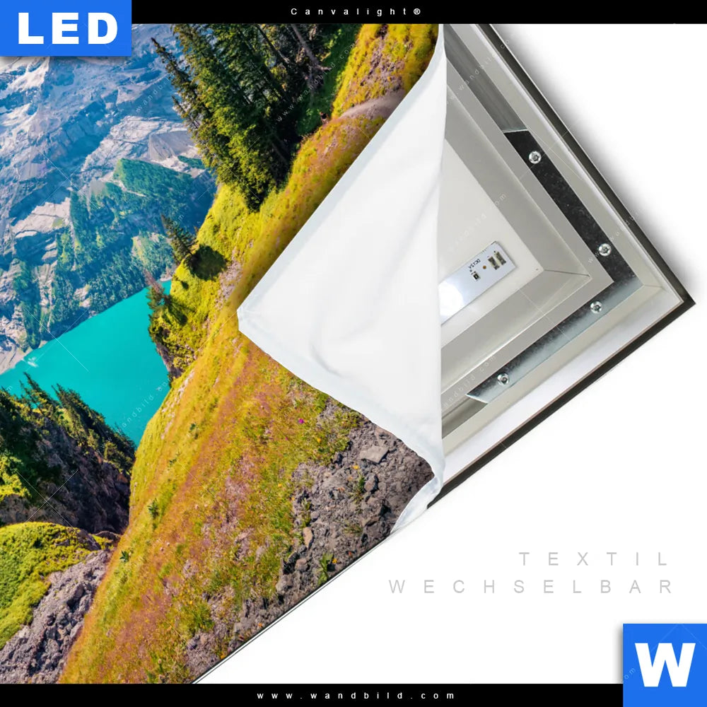 LED-Textilrahmen-Bild mit austauschbarem Landschaften Textil-Druck (Wechselbild)