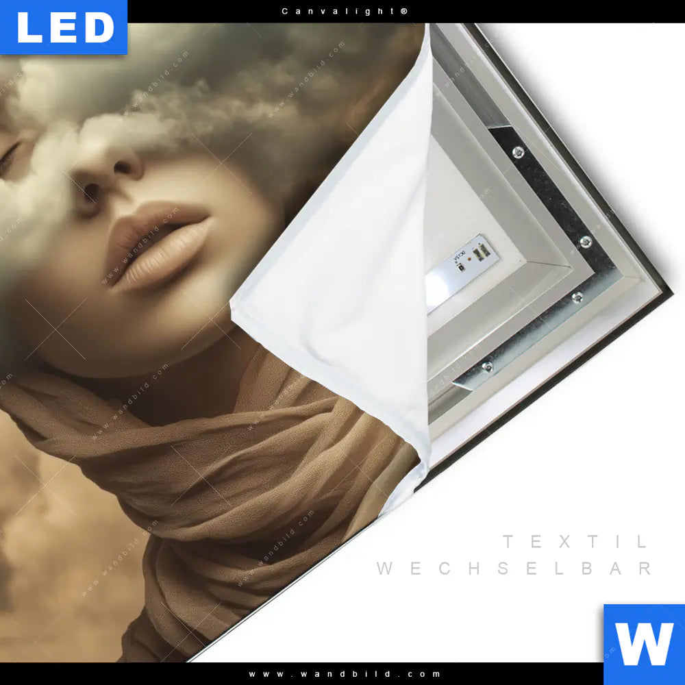 LED-Textilrahmen-Bild mit austauschbarem Porträts - Menschen Textil-Druck (Wechselbild)