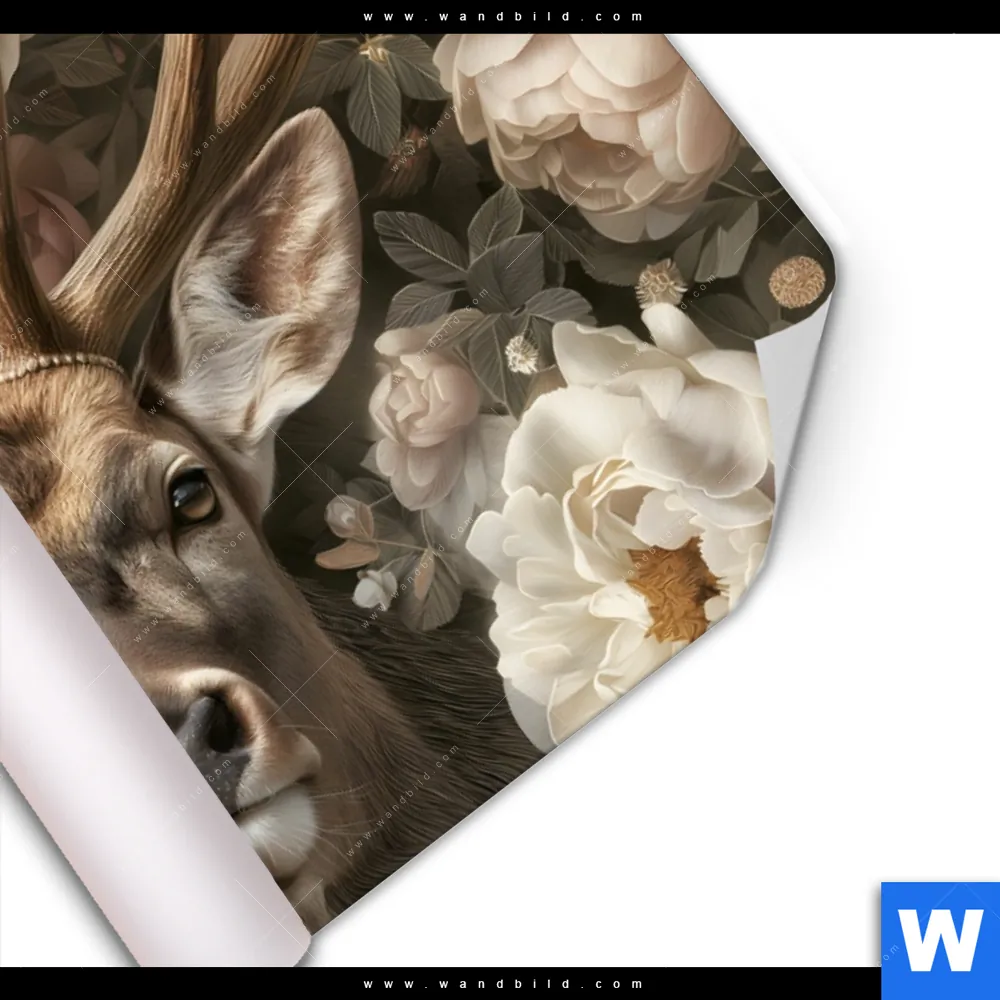 Poster | Romantischer Hirsch mit Blumen | Querformat