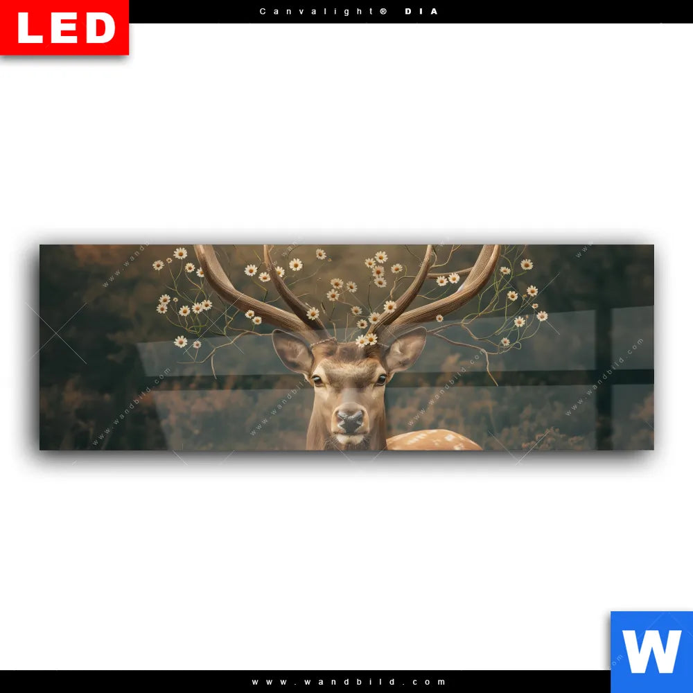 Wechselmotiv Acrylglas Canvalight® DIA | Magischer Hirsch im Waldrand | Panorama