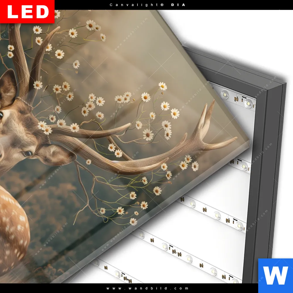 Wechselmotiv Acrylglas Canvalight® DIA | Magischer Hirsch im Waldrand | Quadrat
