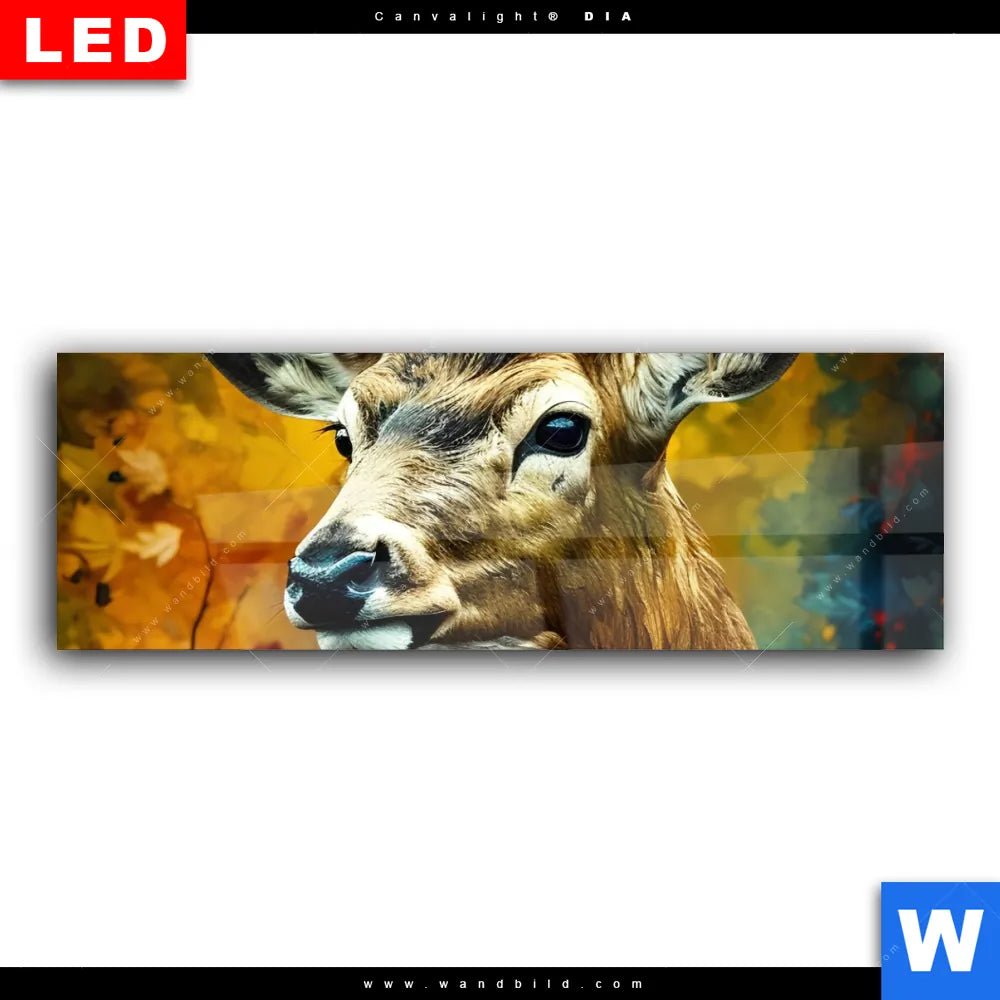 Wechselmotiv Acrylglas Canvalight® DIA | Rothirsch im Herbstwald | Panorama