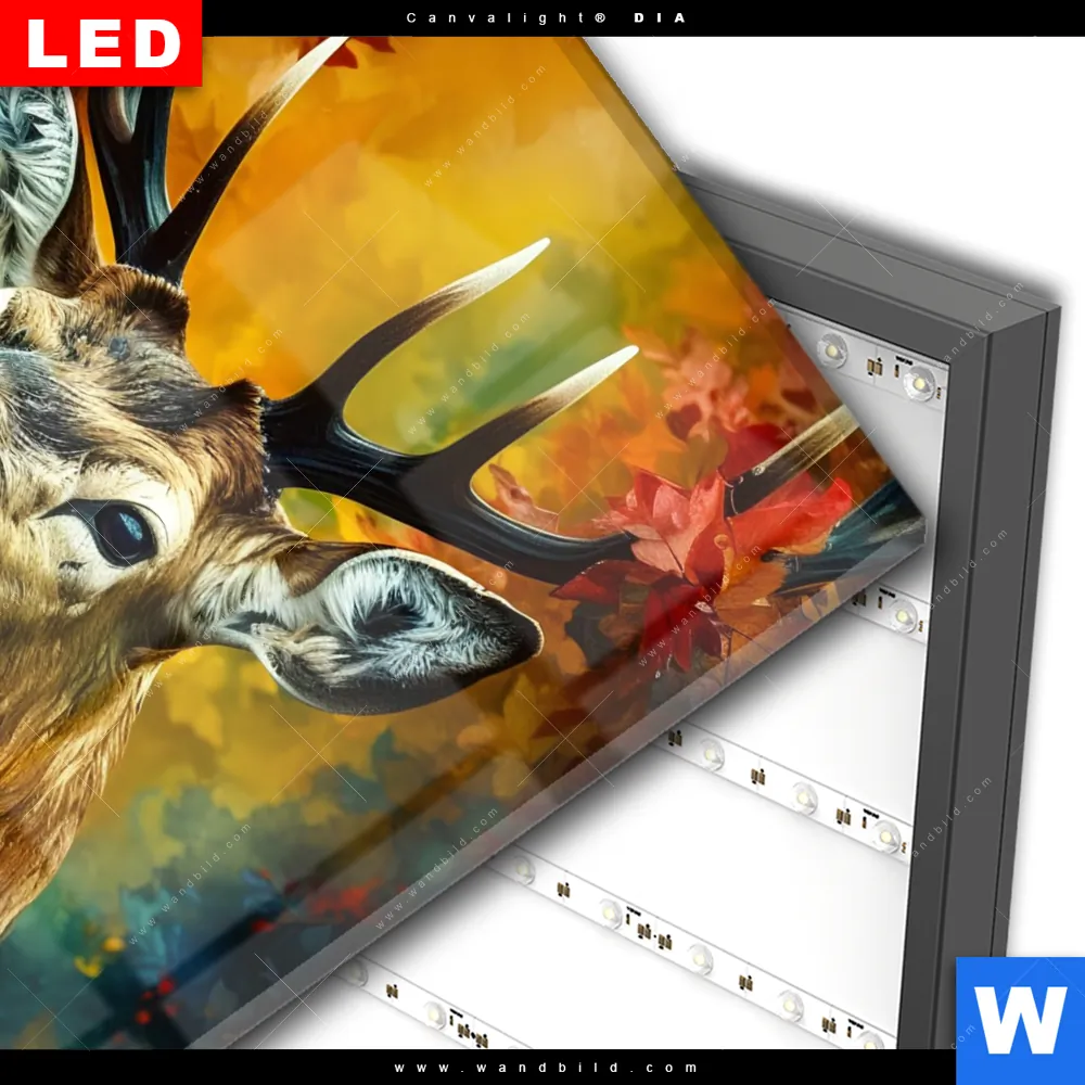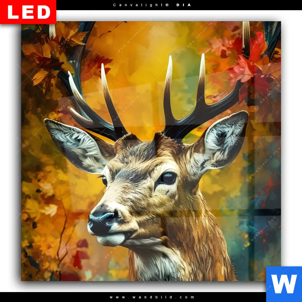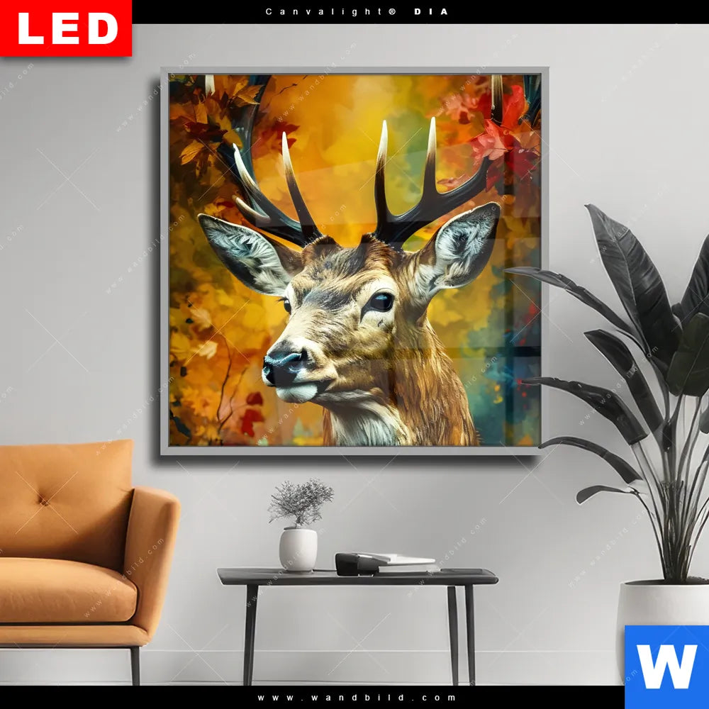 Wechselmotiv Acrylglas Canvalight® DIA | Rothirsch im Herbstwald | Quadrat