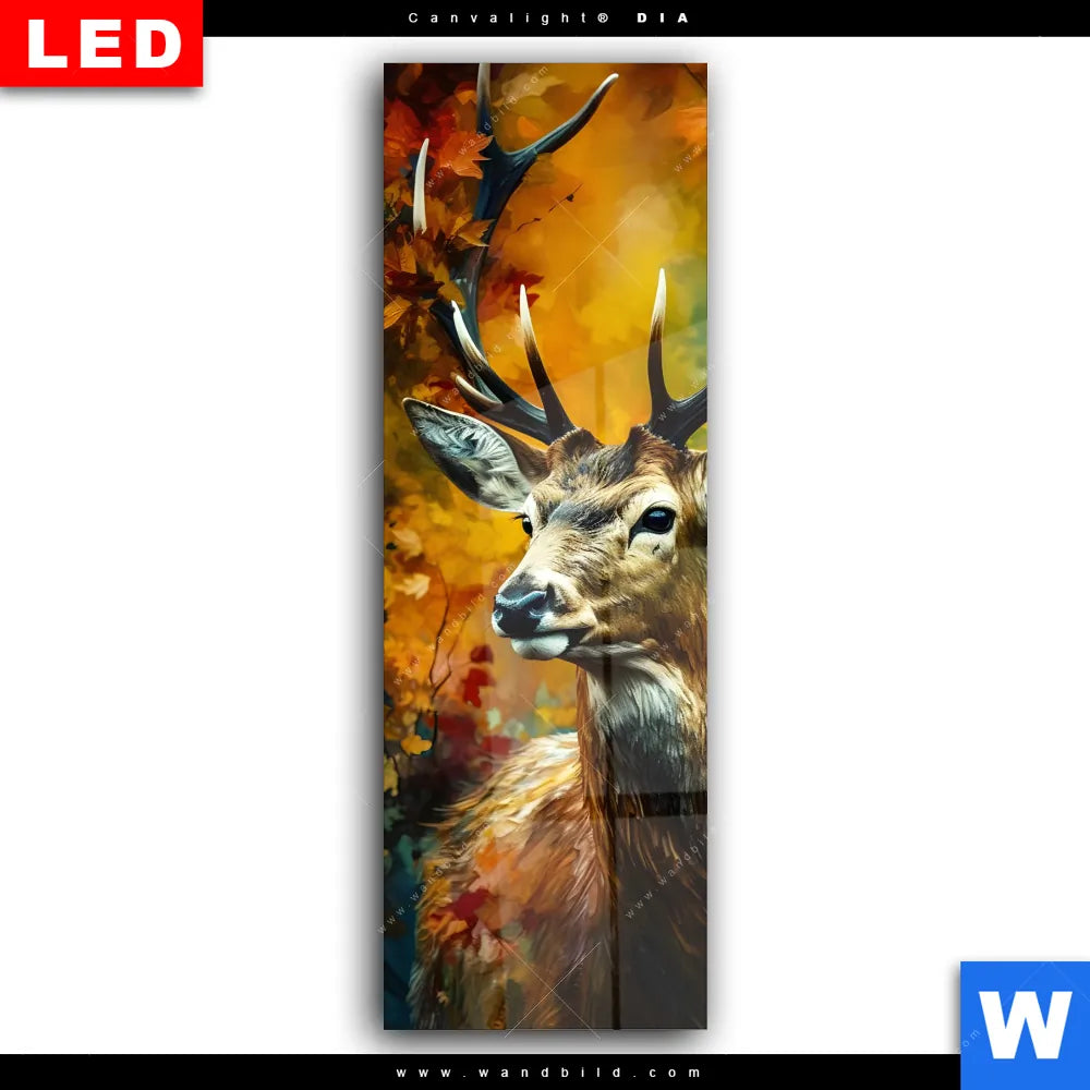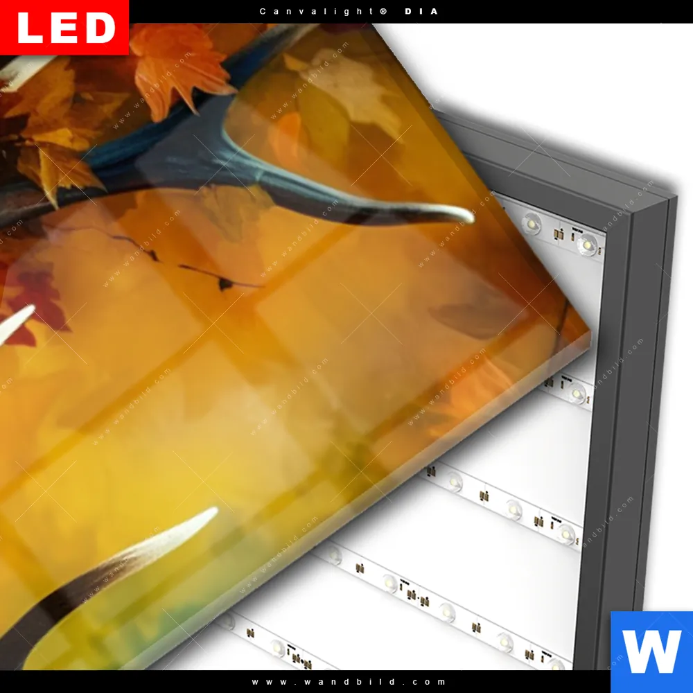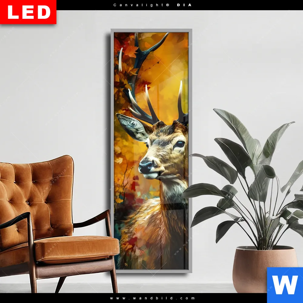 Wechselmotiv Acrylglas Canvalight® DIA | Rothirsch im Herbstwald | Schmal