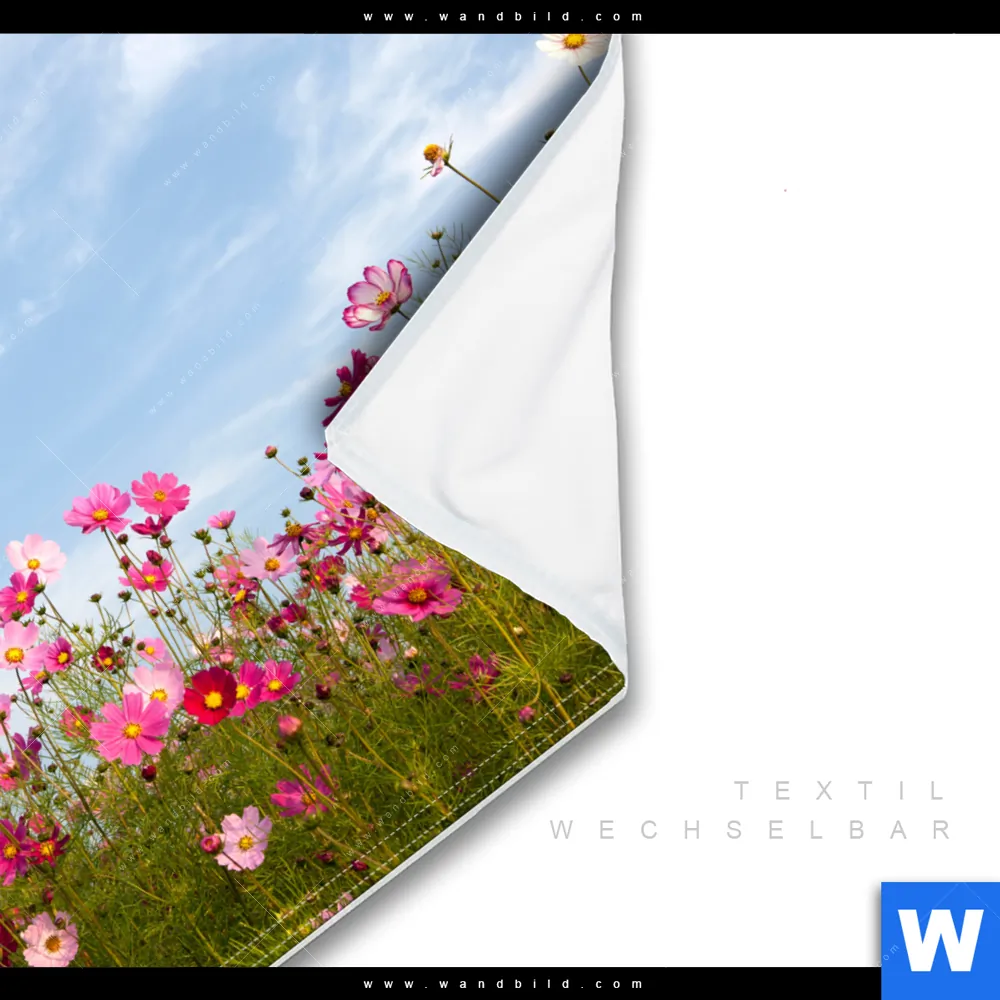 Wechselmotiv Textil | Blumenwiese bei strahlend blauem Himmel | Quadrat