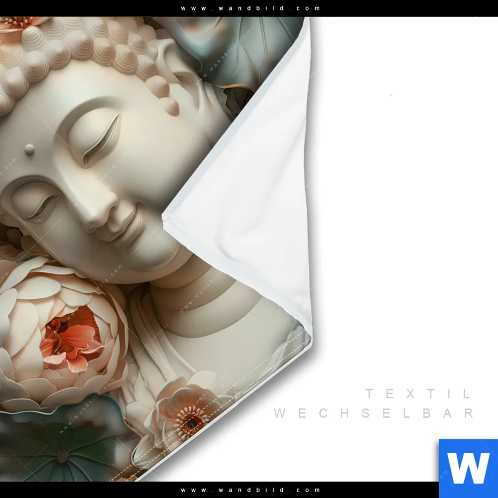 Wechselmotiv Textil | Buddha-Statue mit Blüten | Quadrat
