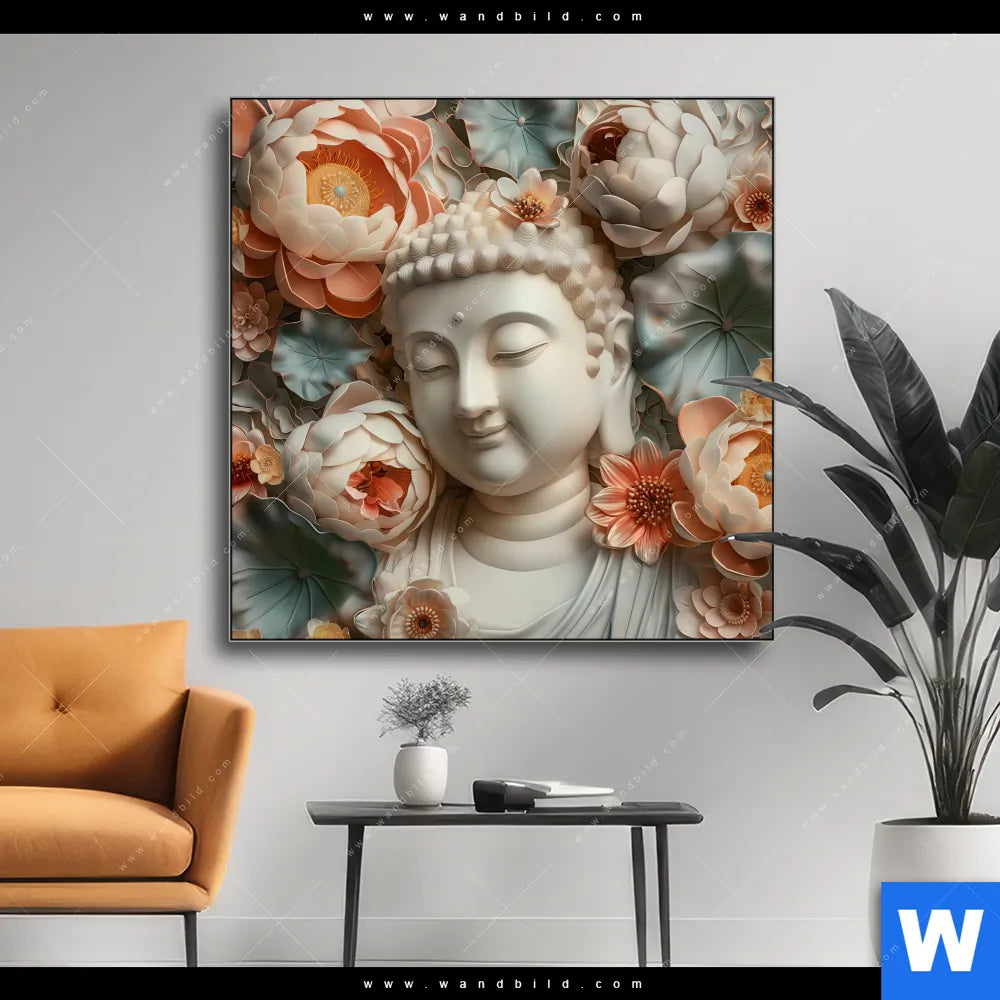 Wechselmotiv | Buddha-Statue mit Blüten | Quadrat