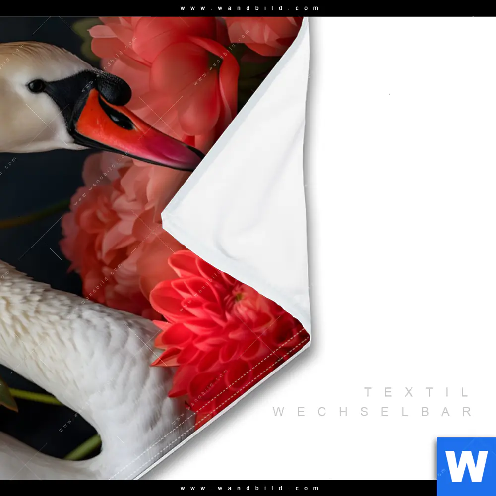 Wechselmotiv Textil | Eleganter Schwan mit Blumen | Querformat