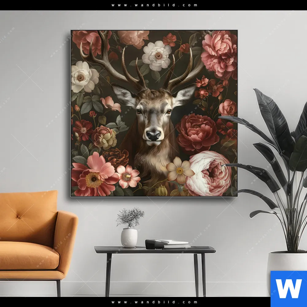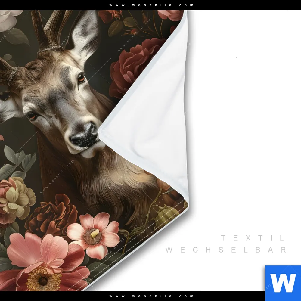 Wechselmotiv Textil | Friedlicher Hirsch und Blüten | Quadrat