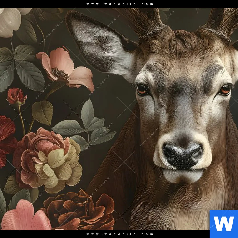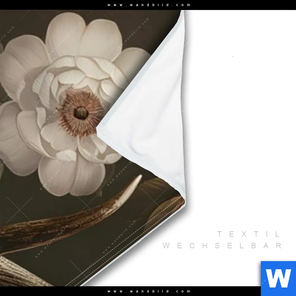 Wechselmotiv Textil | Friedlicher Hirsch und Blüten | Schmal
