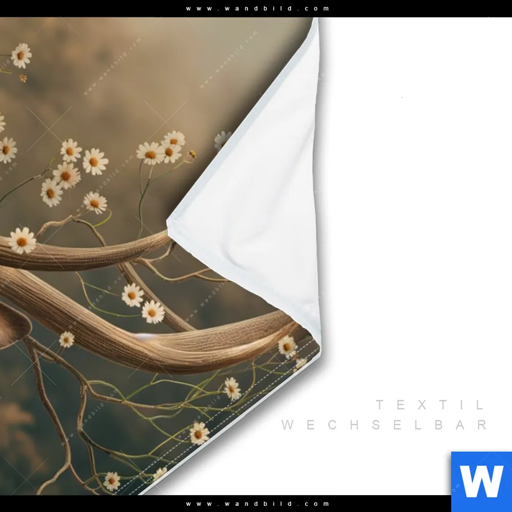 Wechselmotiv Textil | Magischer Hirsch im Waldrand | Hochformat
