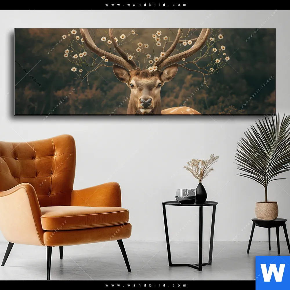 Wechselmotiv Textil | Magischer Hirsch im Waldrand | Panorama