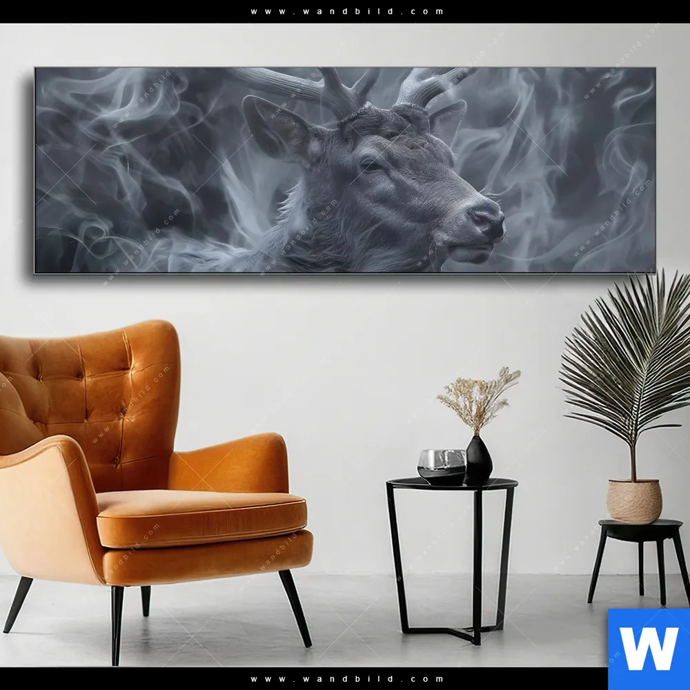 Wechselmotiv Textil | Mystischer Hirsch im Nebel | Panorama