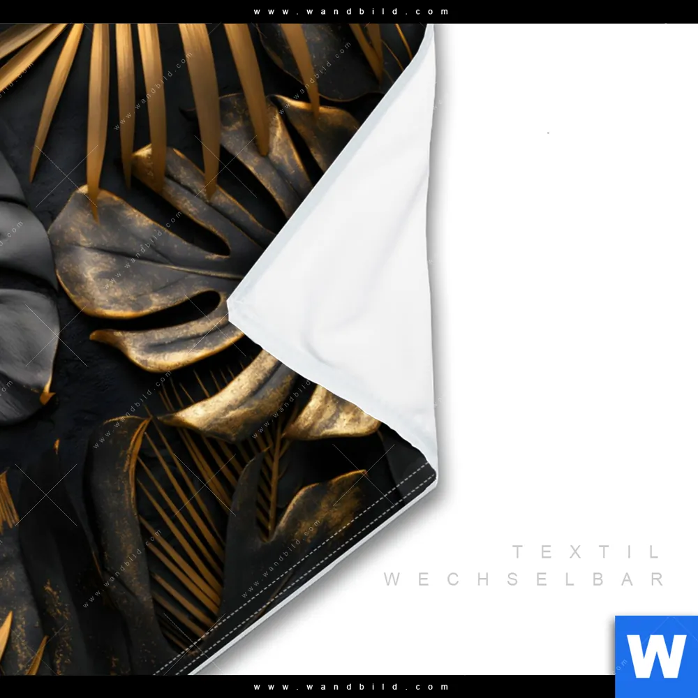 Wechselmotiv Textil | Palmenblätter Schwarz Gold | Hochformat