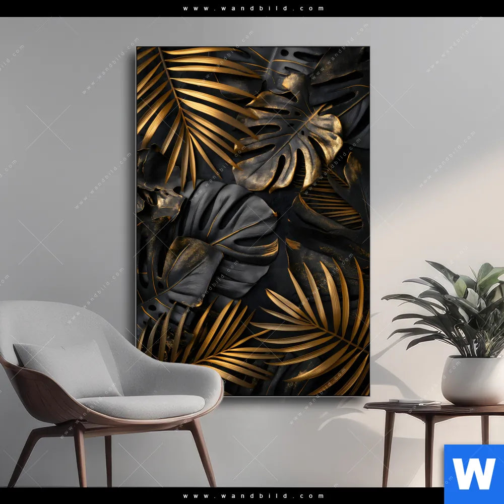 Wechselmotiv | Palmenblätter Schwarz Gold | Hochformat