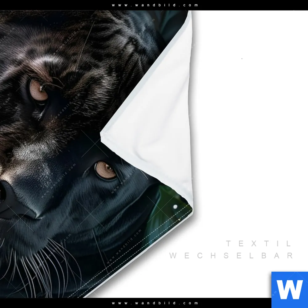 Wechselmotiv Textil | Panther und rote Blüten | Hochformat