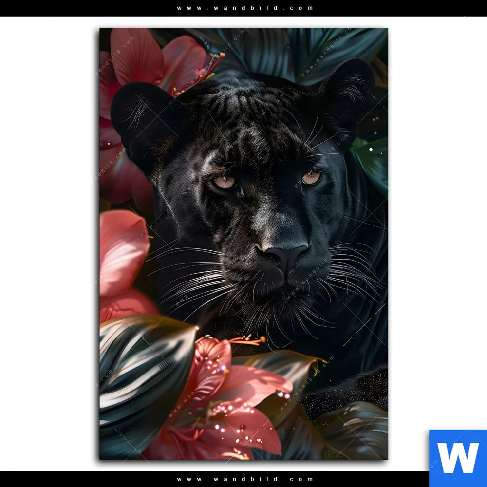 Wechselmotiv | Panther und rote Blüten | Hochformat