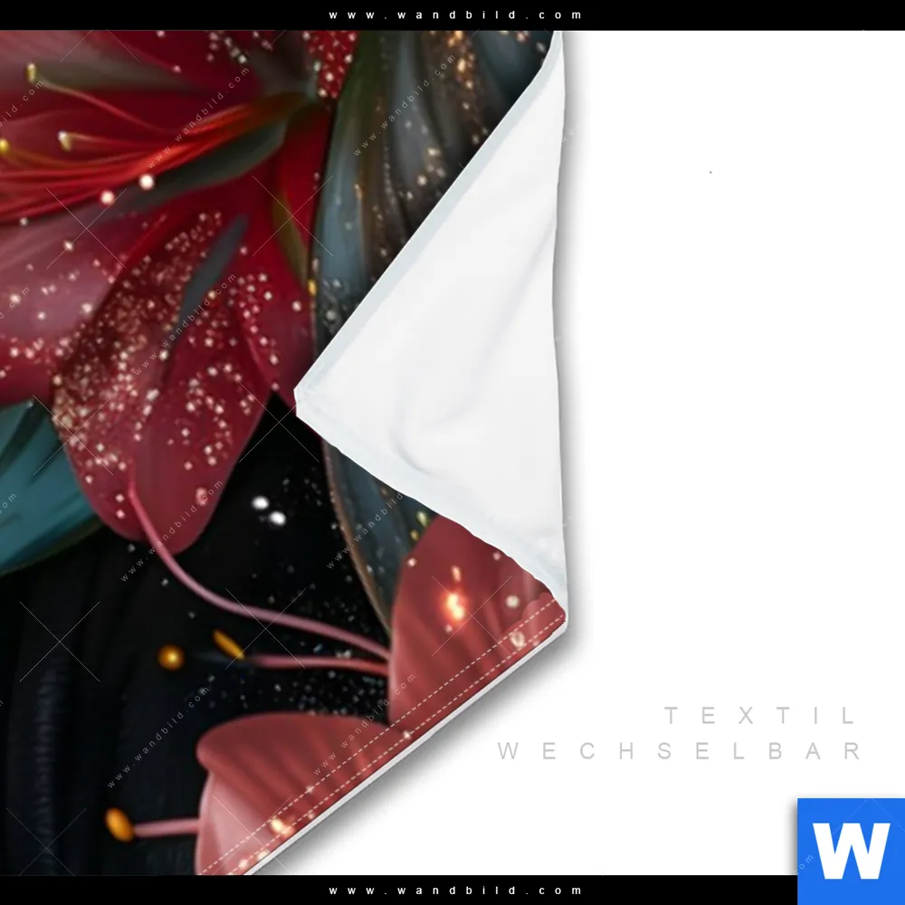 Wechselmotiv Textil | Panther und rote Blüten | Panorama