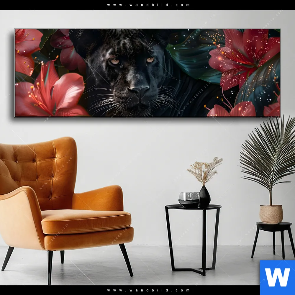Wechselmotiv | Panther und rote Blüten | Panorama