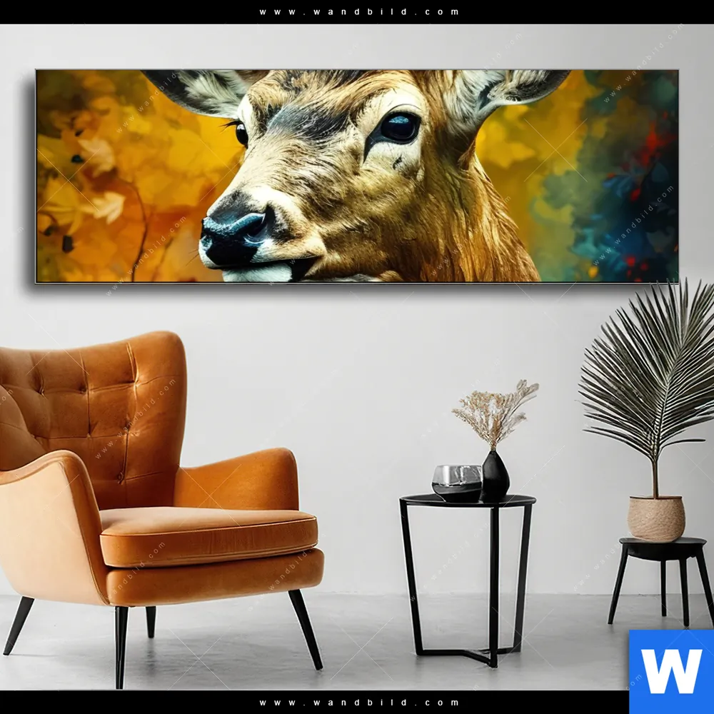 Wechselmotiv Textil | Rothirsch im Herbstwald | Panorama