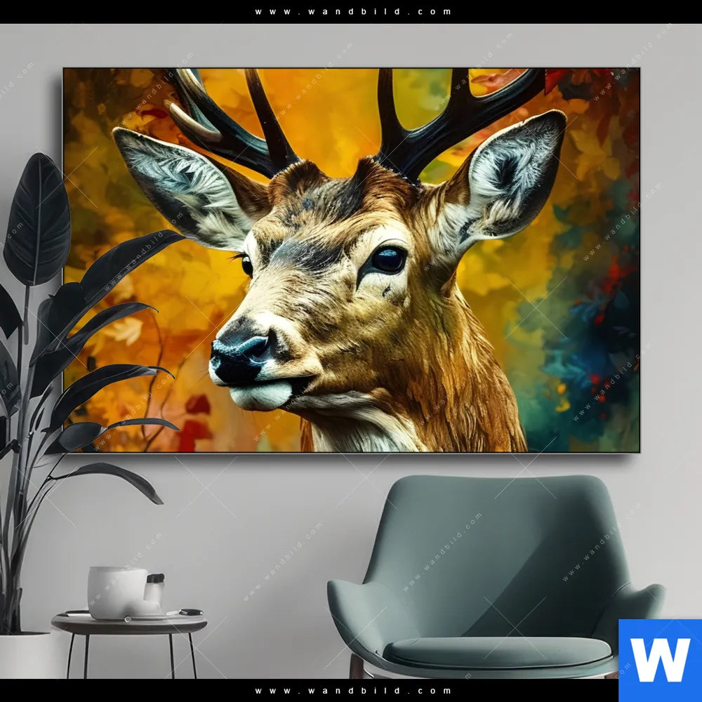 Wechselmotiv Textil | Rothirsch im Herbstwald | Querformat