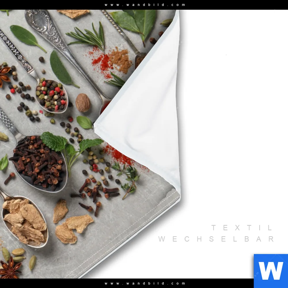 Wechselmotiv Textil | Silberlöffel mit Gewürzen | Querformat