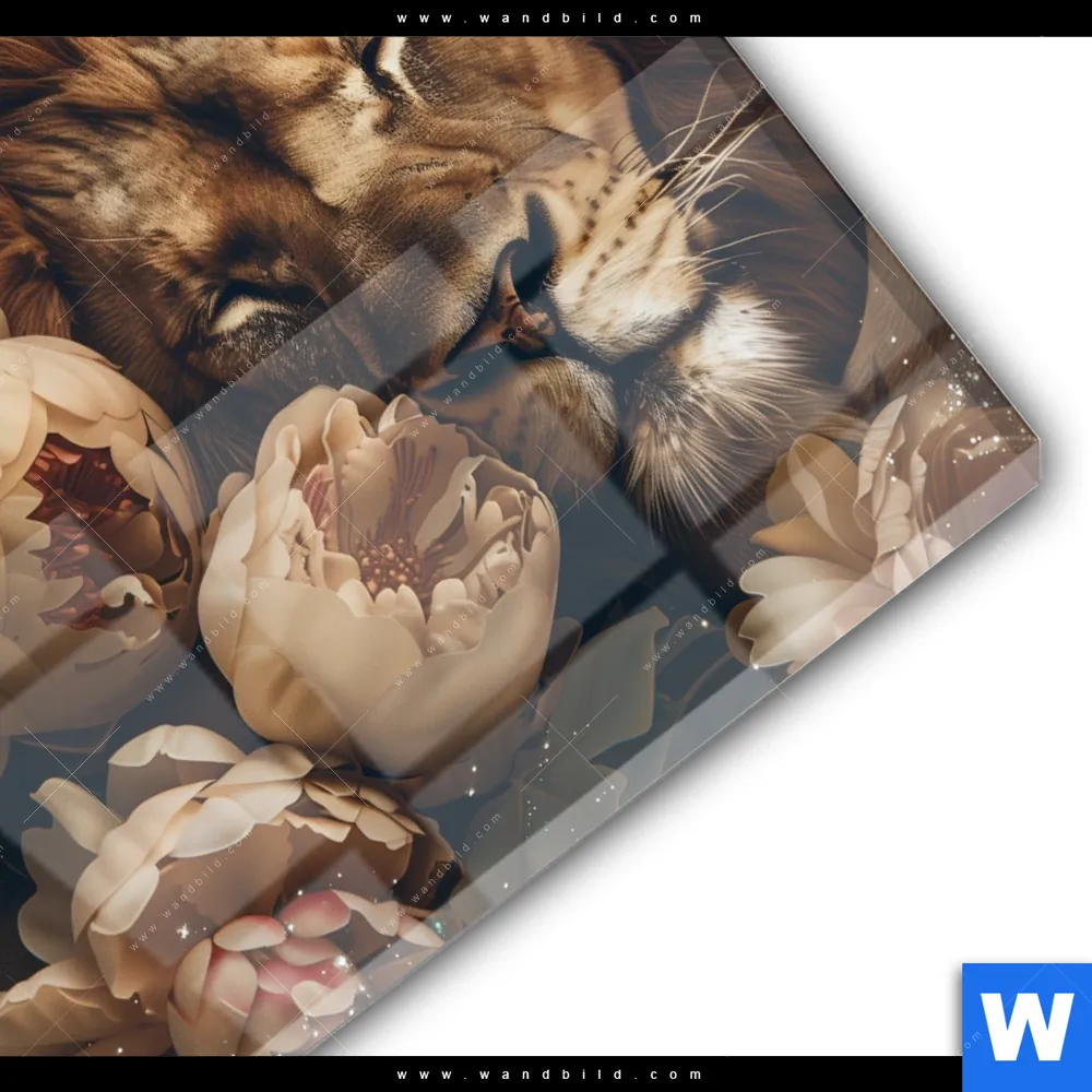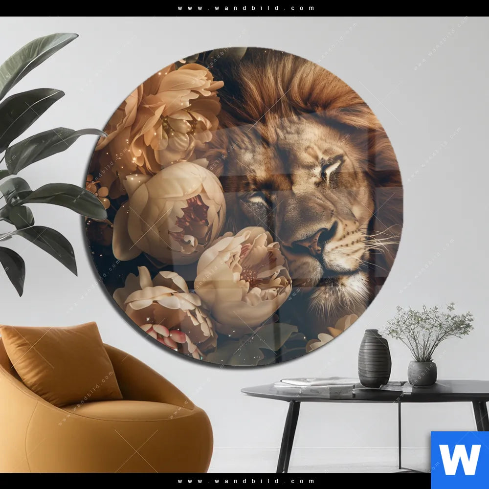 Acrylglasbild | Löwe schläft in Blüten | Rund
