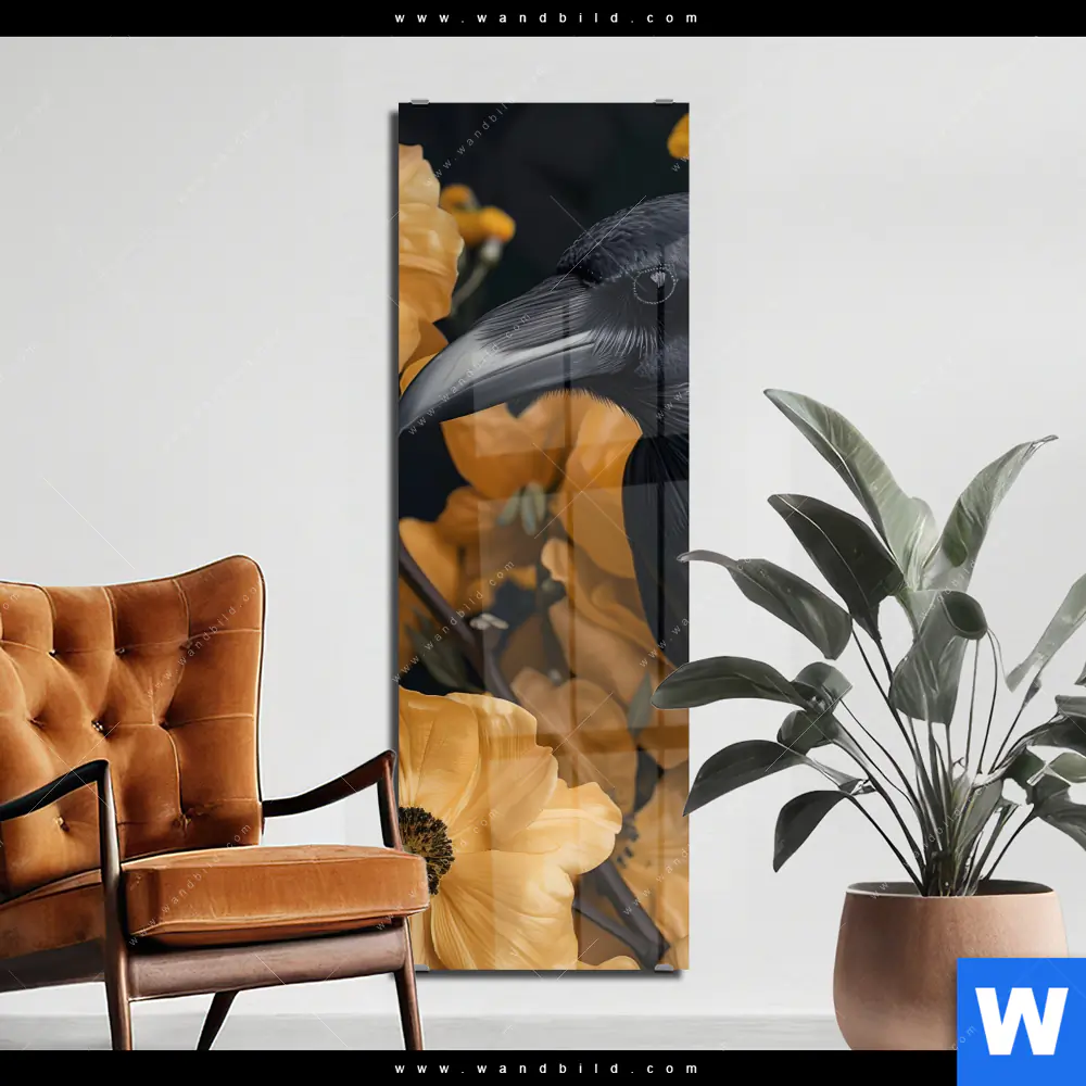 Acrylglasbild | Naturbild - Rabe & Blüten | Schmal