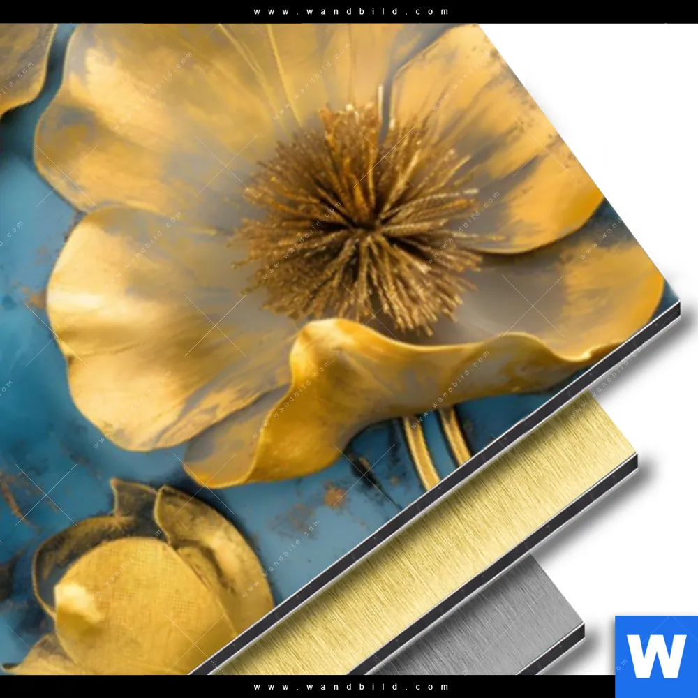 Alu-Dibond Bild | Goldene Blumen auf Blau | Panorama
