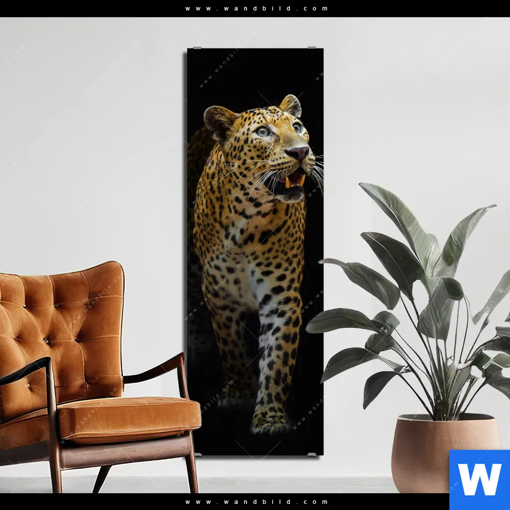 Alu-Dibond Bild | Leopard in der Dunkelheit | Schmal