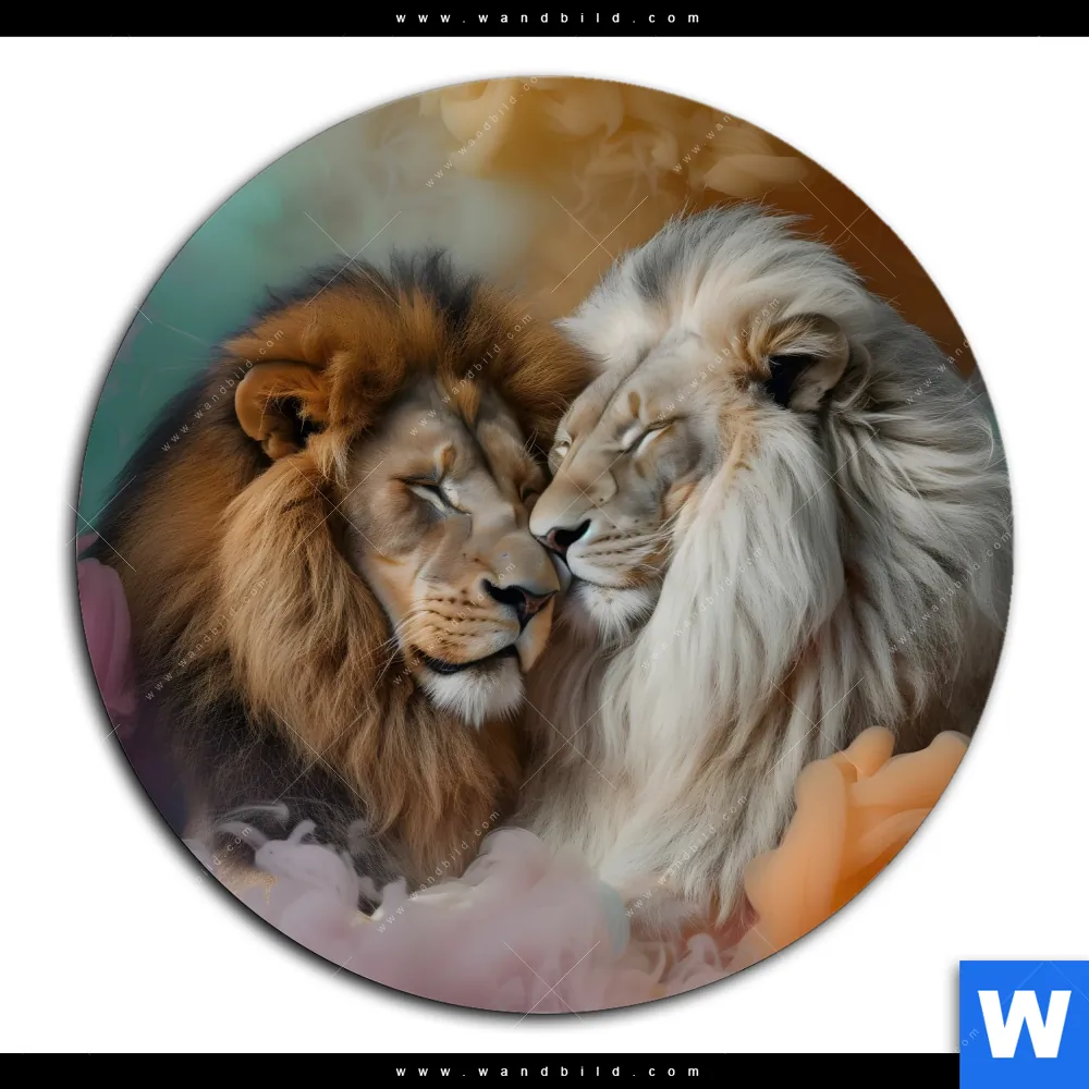 Alu-Dibond Bild | Sanfte Löwenmomente in buntem Nebel | Rund