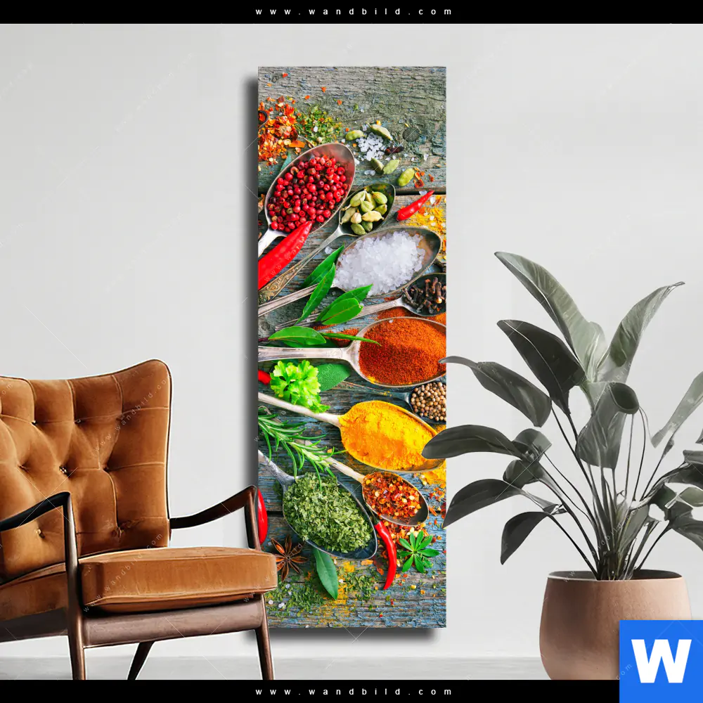 Leinwandbild | Löffel mit Kräutern und Gewürzen | Schmal