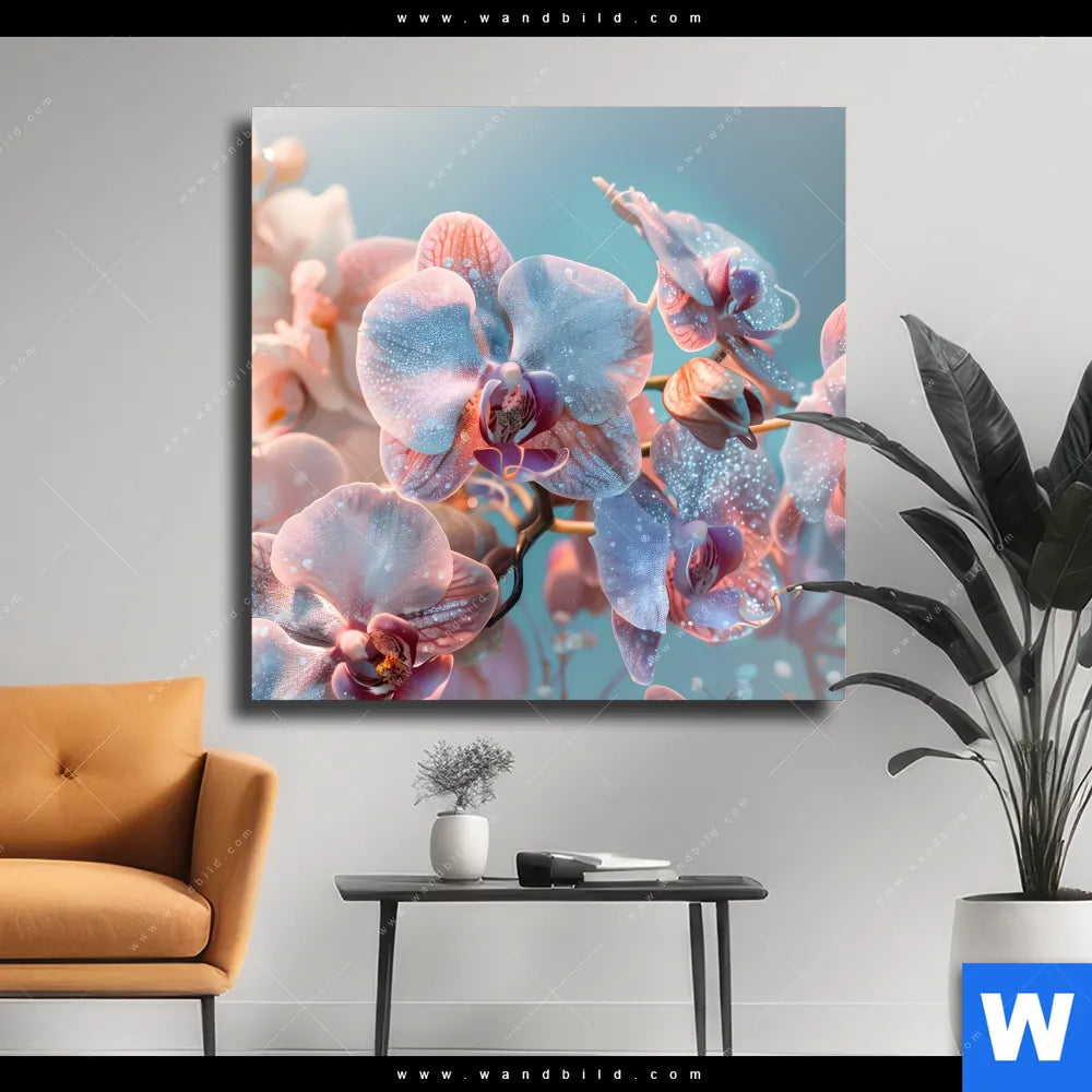 Leinwandbild | Orchideenblüten in Pastell | Quadrat