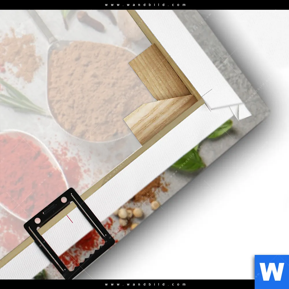 Leinwandbild | Silberlöffel mit Gewürzen | Schmal