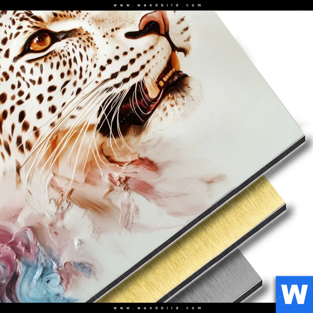Aluminiumbild gebürstet | Leopard in Farbexplosion | Rund