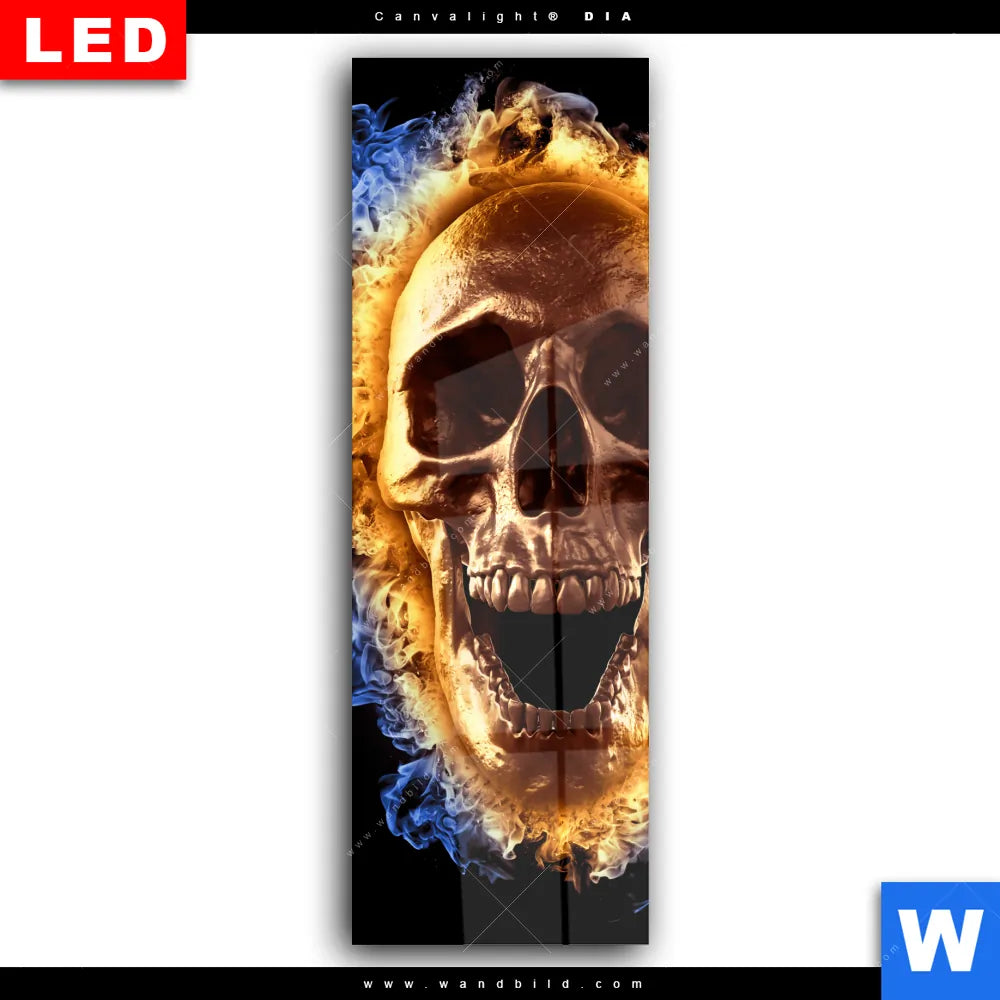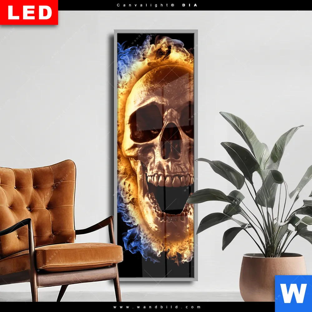 Wechselmotiv Acrylglas Canvalight® DIA | Schädel in Flammen | Schmal
