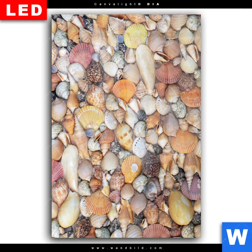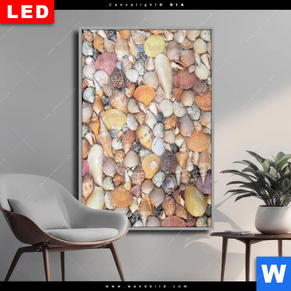 Wechselmotiv Acrylglas Canvalight® DIA | Viele Muscheln | Hochformat