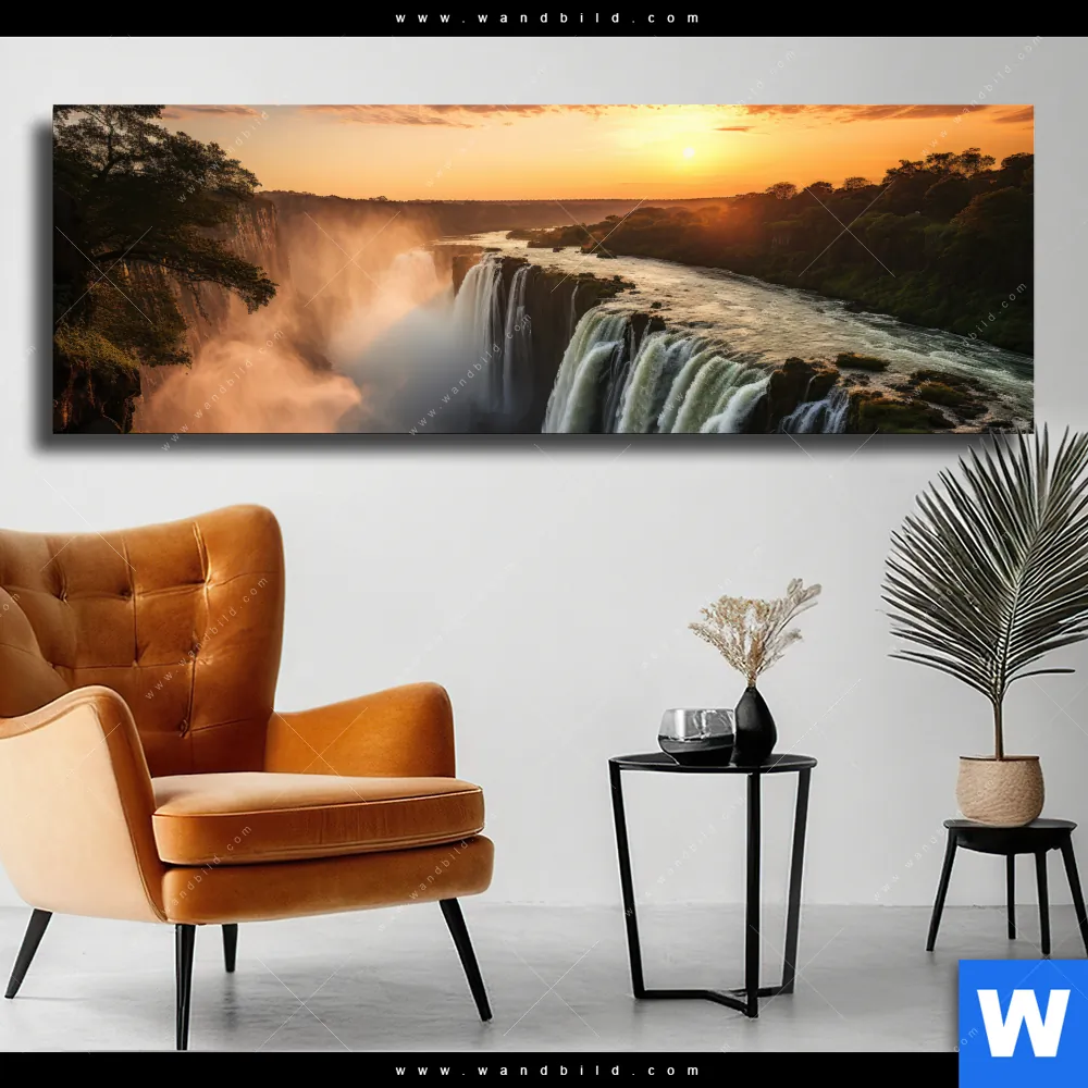 Leinwandbild | Wasserfall bei Abendsonne | Panorama