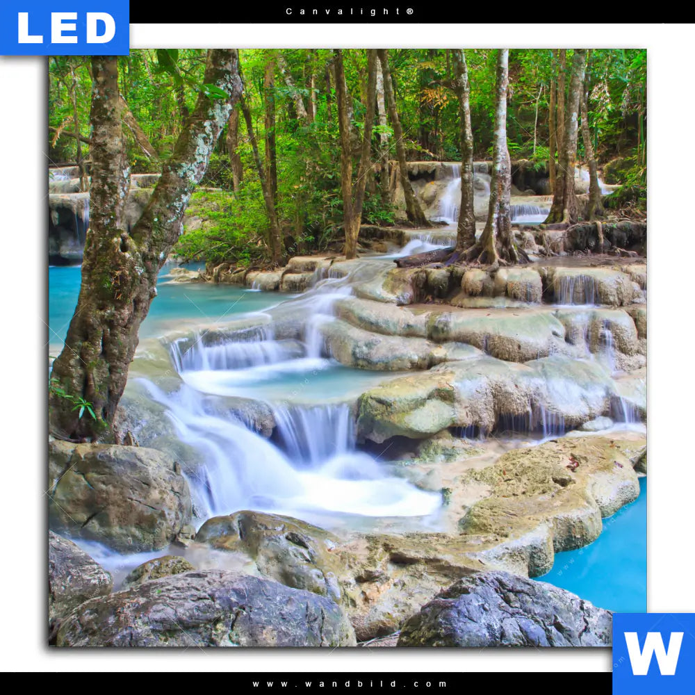 Canvalight® TEX Leuchtbild | Exotischer Wasserfall | Quadrat