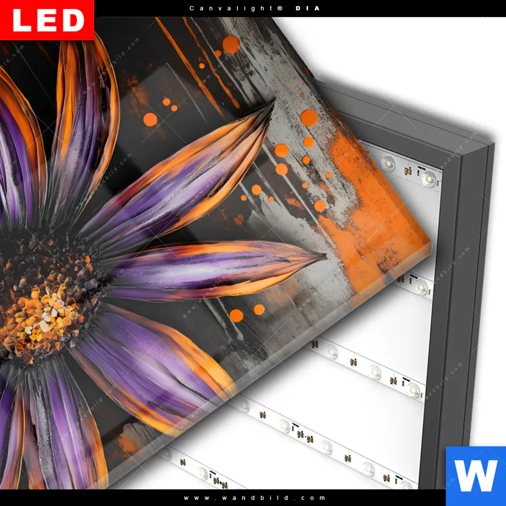 Wechselmotiv Acrylglas Canvalight® DIA | Abstrakte Blume in Orange & Lila | Hochformat
