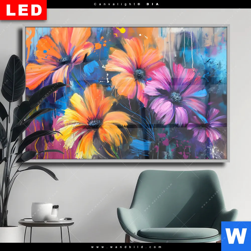 Wechselmotiv Acrylglas Canvalight® DIA | Abstrakte Blumenpracht | Querformat