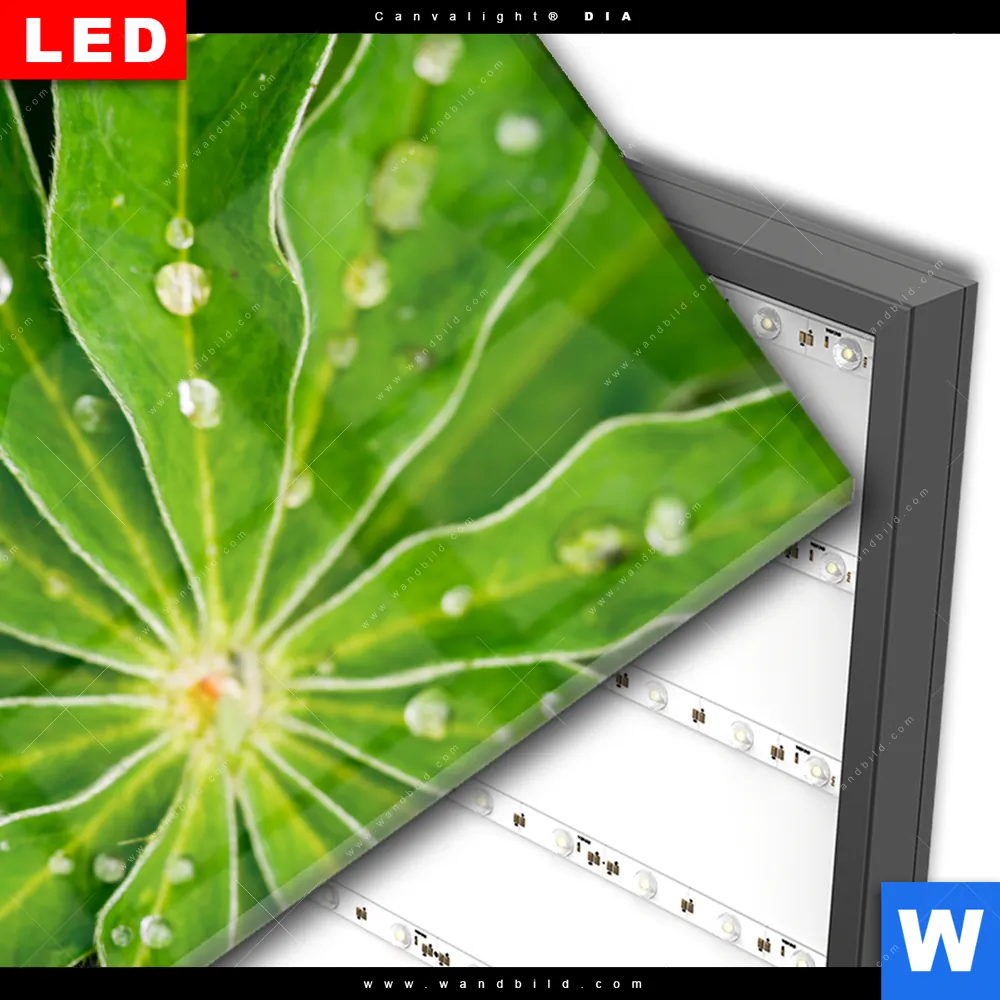 Wechselmotiv Acrylglas Canvalight® DIA | Blatt mit Wassertropfen | Quadrat