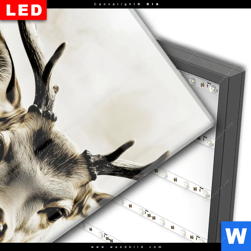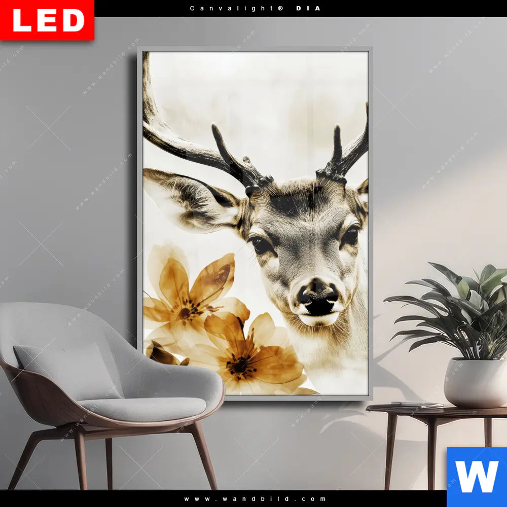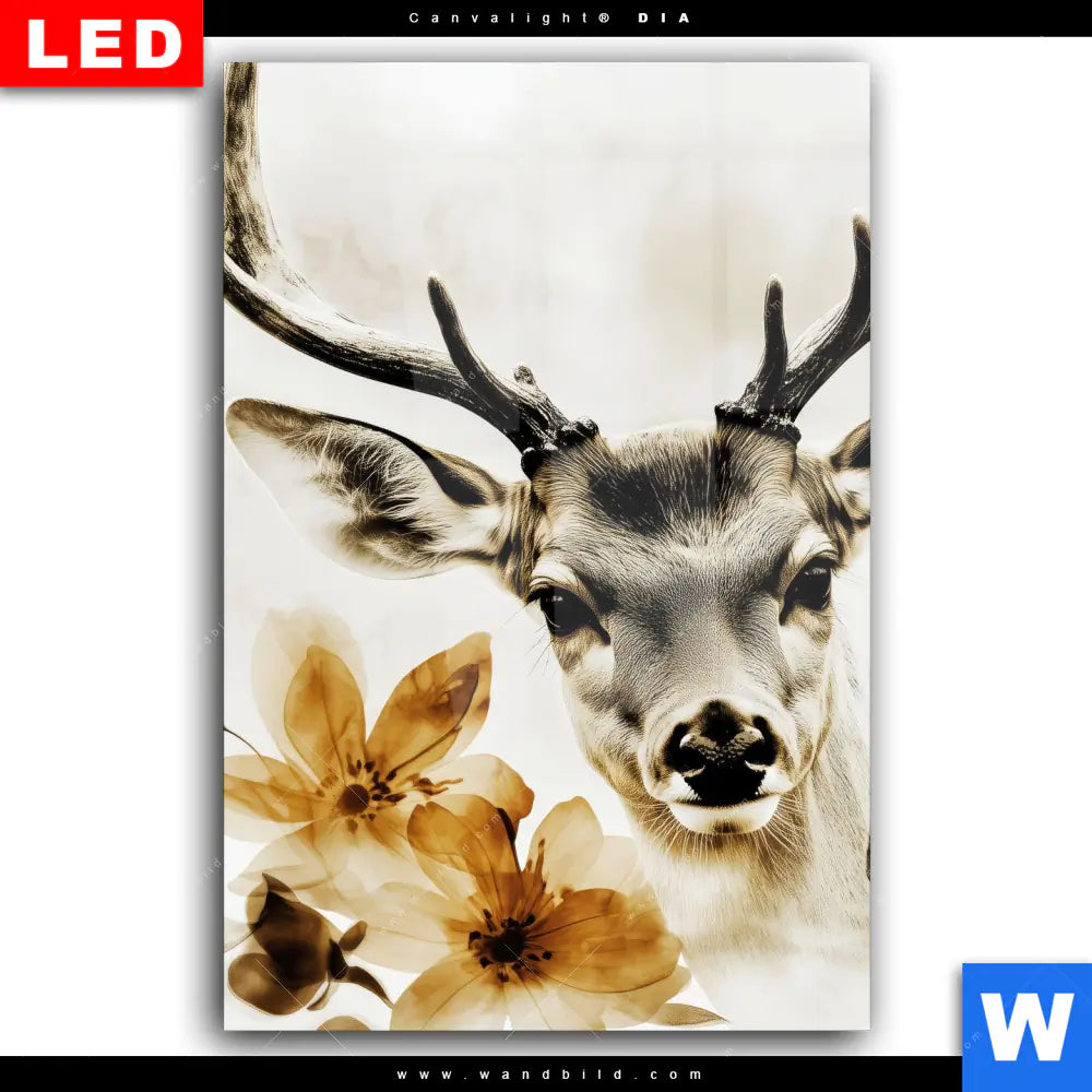 Wechselmotiv Acrylglas Canvalight® DIA | Blütenpracht trifft Geweih | Hochformat