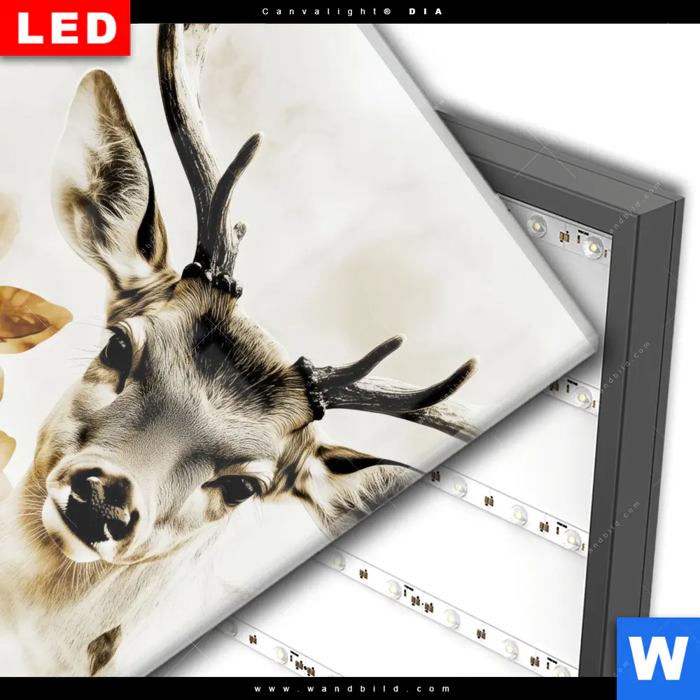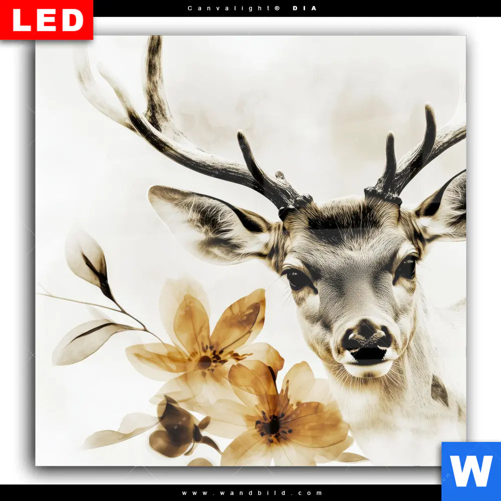 Wechselmotiv Acrylglas Canvalight® DIA | Blütenpracht trifft Geweih | Quadrat