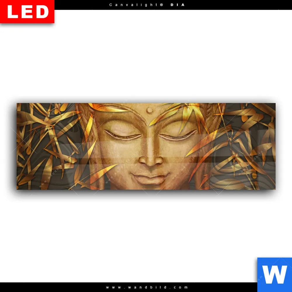 Wechselmotiv Acrylglas Canvalight® DIA | Buddha & Bambus in Gold | Panorama